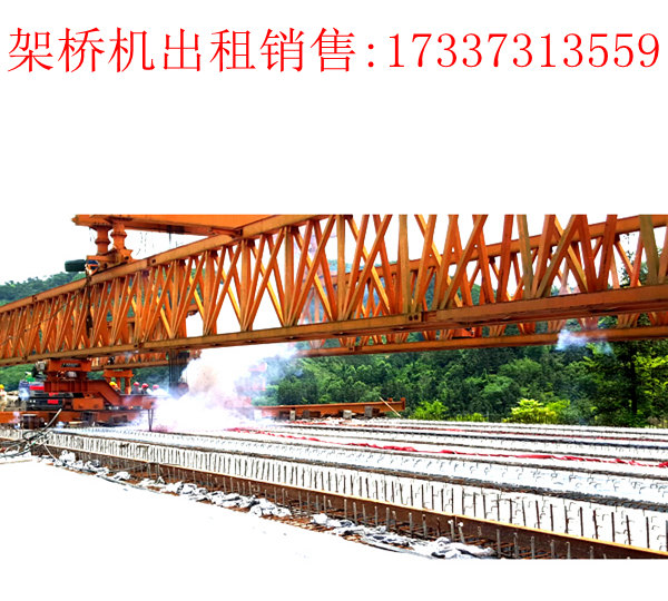 架橋機拼裝時,需要將準備要吊裝的橋梁一側填平并經過整平處理,作為架橋機的拼裝平臺,具體組裝過程須按事先規劃好的施工方案程序進行。架橋機在拼裝前,須做好相應的準備工作,先在安裝側橋頭擺放枕木,靠近橋墩且平行橋墩,枕木上安置橫移軌道,橫移軌道支墊平穩并用水準儀測平以確保拼裝精準。然后需要將架橋機的“中托”安放在橫移軌道上,之后安置反托輪組和連桿。其次是拼裝架橋機的主梁,主梁拼裝時要先把第一節安放在中托和另一枕木垛上,然后逐節加長。然后安裝前框架和后面平衡梁,再安裝前后支腿。組裝架橋機的天車,組裝架橋機天車時,天車的輪組、定滑輪安裝后,擺放卷揚機和動滑輪。整機拼裝完成后,掛動力線試運行,沒有問題后方可進行下一步的操作和拼裝。