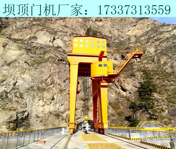 甘肅天水壩頂門機(jī)銷售廠家17337313559閘壩式水電站工程中門機(jī)軌道梁 的吊裝方法,該方法操作方便、成本低、施工現(xiàn)場適應(yīng)性強(qiáng),在使用中產(chǎn)生了顯著的社會效 益和經(jīng)濟(jì)效益。為了達(dá)到以上目的,本發(fā)明提供的閘壩式水電站工程中門機(jī)軌道梁的吊裝方法, 主要包括五個部分,即軌道梁基坑平移、固定雙吊點懸臂軌道式桁吊的安裝、軌道梁吊運、 固定雙吊點懸臂軌道式桁吊的轉(zhuǎn)移以及下游門機(jī)軌道梁的閘墩頂平移,其中,所述軌道梁基坑平移,包括以下步驟第一步清理場地,鋪設(shè)軌道;第二步用2臺50噸千斤頂先將梁一端頂起,把軌道伸入梁下,將旱船放入梁與 軌道之間,最后將梁放在旱船上,取出千斤頂再頂另一端梁;2臺千斤頂起梁時必須保持同 步,不宜起得太高、軌道和旱船能放進(jìn)去即可;放入旱船前在軌道上表面均勻涂抹些黃油, 以減小牽引阻力;第三步在旱船和預(yù)先埋設(shè)的地錨上分別掛上10噸單輪滑車;第四步纏繞鋼絲繩,鋼絲繩一端固定在地錨上,另一端繞過動滑輪和導(dǎo)向滑輪后 掛在挖掘機(jī)上;第五步以2臺挖掘機(jī)為動力平移軌道梁至距閘墩根部IOcm左右處,2臺挖掘機(jī) 牽引時應(yīng)基本保持速度一致。