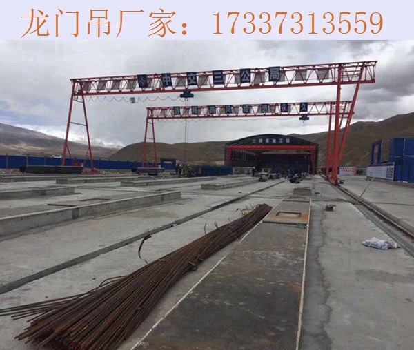 龍門吊防風安全裝置的定期檢查及調整,是很重要的前提。剎車在防風環節上是不可或缺的,也是常用的措施,對龍門吊剎車檢查為一月一次,由檢修班負責調試維護,以確保剎車使用可靠。 防滑楔塊是用在設備靜止狀態下防風較有效的措施之一為每臺龍門吊配備8個,后備4個,并定期檢查鍥塊的損壞程度。有損壞的應立即更換好的。定期檢查夾軌器是否靈活,如果長時間不用,可能會生銹,導致夾軌器無法取出。對設計不合理的螺栓柄應及時更換。龍門吊防風輔助設施地埋部分要定時清理,使其掛鉤處露出來,對其畫出明顯標記。當遇有大風暴雨天氣,風力達到6級時,龍門吊操作人員要停止使用龍門吊吊重,將材料放下收鉤,將龍門吊停好,切斷電源,鎖緊夾軌器,再切斷主電源,如果風力越來越大,龍門吊晃動較大時,需要使用輔助防風設施來固定龍門吊。下班時間遇有大風暴雨天氣風力較大時,龍門吊管理人員要及時的使用輔助防風設施來加固龍門吊。天氣預報有臺風時,要提前將龍門吊用輔助防風設施加以穩固。由于冬季的特殊氣候,風大天冷,加固龍門吊相對而言就比較困難了,軌道有冰塊覆蓋,夾軌器夾不住,鋼絲繩可能被凍住拉不動,這時需要多人來操作,協作完成加固任務。