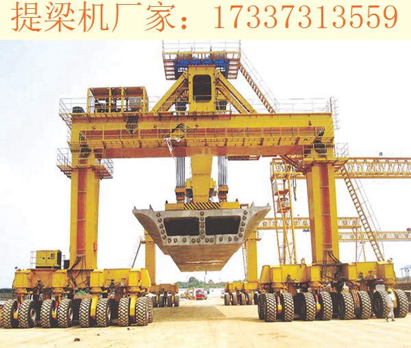 提梁機則是把梁片從地面上提起來交給運梁車,再由運梁車把梁片運輸到架橋機下面。兩者是相互配合工作的。架橋機也分好幾個類型的,根據行走方式不同,有的架橋機是靠驅動輪行走,有的是導梁結構。 架橋機主要是架設橋梁用,吊運混凝土梁到指定的位置,用來調整方向,是靠四個支柱來完成支撐的。架橋機在公路架橋過程中,主要作用是把預制好的梁片運輸到橋墩上。。