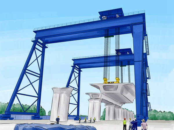 在起升和下落過程中,應注意4臺卷揚和制動機構的監視,預防鋼絲繩跳槽及包剎失靈。在提梁機行走過程中,也應注意觀察運行道路上有無障礙物及有損壞輪胎的東西,如有應及時排除。行走道路路面應平整。在任何情況下,嚴禁乘坐吊鉤升降橫飛,吊重物下面嚴禁站人。