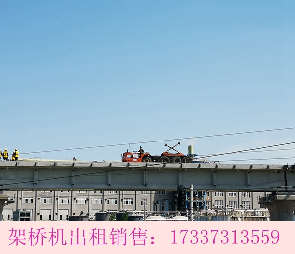 廣西柳州架橋機出租廠家公路架橋機安裝完成之后需要檢查各個機構的運行情況,等到正常之后將主梁調平,同時運轉平車以及托運預制達到架橋尾端,準備過孔,引起支腿油缸,放置要穩固,使得主梁升高到適當的位置,之后再套管內差勁銷軸,中支腿依靠本身的吊掛前進50米到位,將中支腿和橫移軌道放下墊實前后支腿油缸受力,把銷軸抽出,然后整機下落,使主梁落在中支腿和后托架的托輥輪上,前、后起吊小車開至中支腿附近,啟動中支腿和后托架托輥機構,使主梁前進20米,前后起吊小車同步向后移動20米;后托架油缸回收使之懸空,依靠自身吊掛機構(無動力)前移30米,到位后將后托架放平并插入銷軸;然后后支腿油缸回收使之懸空,同時前后起吊小車后移至尾部;啟動中支腿和后托架托輥機構,使主梁前進15米,前后起吊小車同步向后移動15米;然后前后起吊小車繼續同步向后移動到主梁尾端,同時運梁車托運預制梁到位,后起吊小車吊起預制梁的一端作為配重并連接牢固;啟動中支腿和后托架托輥機構,使主梁前進15米,使前支腿到位并頂升,使之支頂到前橋臺上,以滿足架梁要求,然后檢查整機各機構,進行架梁的準備工作。