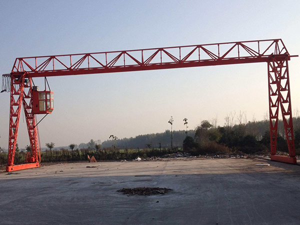 門式起重機是橋式起重機的一種變形,又叫龍門吊。門式起重機具有場地利用率高、作業范圍大、適應面廣、通用強等特點,它的金屬結構像門形框架,承載主梁下安裝兩條支腳,可以直接在地面的軌道上行走,主梁兩端可以具有外伸懸臂梁。