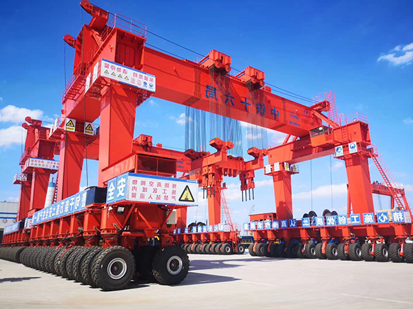 提梁機既可兩臺配合抬吊預制梁,也可以單臺起重機配雙吊具起吊預制梁,兩臺同時起重的提梁機各自的起重量一般為450噸,單臺起重的提梁機起重量通??蛇_900噸。它配置支腿行走、天車行走及天車起吊設備,可以實現全方位機械化動作。主要用于將預制梁從制梁臺提吊至存梁臺位,預制梁養護完成后將其從存梁臺位吊運到運梁車上。作為起重設備完成架橋機的組裝和拆卸。還用于架設墩身不高的旱橋。